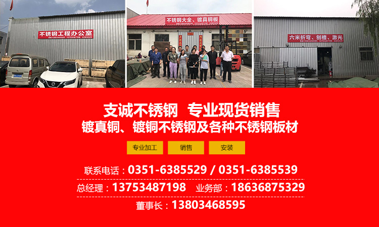 太原支誠不(bù)鏽鋼高(gāo)端闆材超¶∏↑市(shì):公司24種高(gāo)端鍍真銅闆手工(>≠→gōng)拉絲紅(hóng)古銅、手工(¶"☆γgōng)拉絲青古銅、手工(gōng)亂紋紅(hóng)古銅、手工(gōng)亂紋青古銅↓♥ 、做(zuò)舊(jiù)銅闆一(yī)級正材、可(kě)拉彎異形